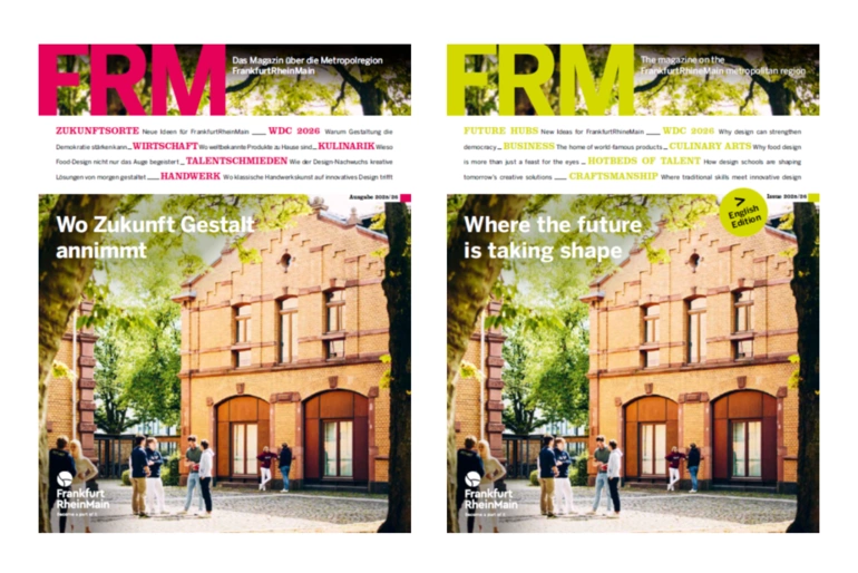 „FRM – Das Magazin über die Metropolregion FrankfurtRheinMain", so der vollständige Titel, ist inzwischen schon eine Institution. Das 52-seitige Heft erscheint seit 2009 – kostenfrei, auf Deutsch und Englisch, in digitaler Version sowie gedruckt. Zielgruppen sind Business-Treibende aus aller Welt genauso wie Besucher oder Bewohner von hier. Print-Exemplare sind zum Beispiel am Frankfurter Flughafen, bei Messen und Events sowie in Foyers und Büros zu finden und gehen auch mit auf Delegationsreise.